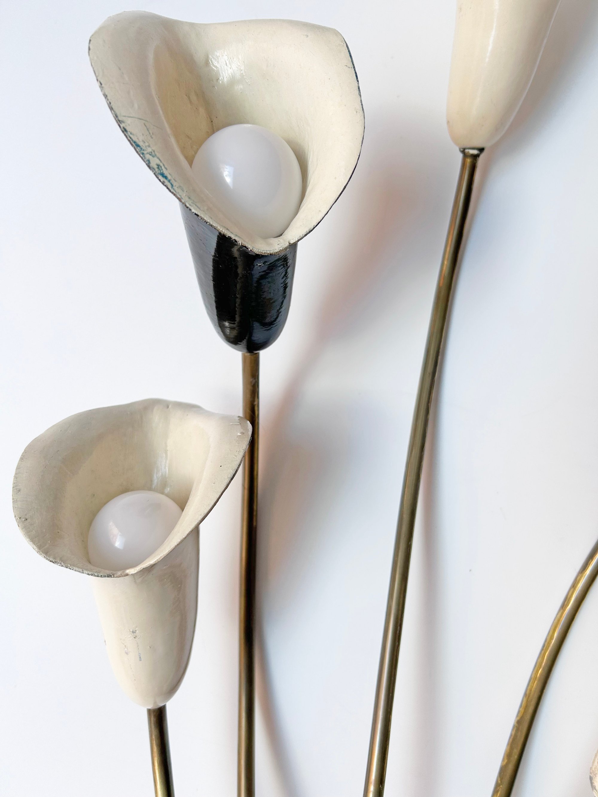 Es espectacular. No puede ser más bonito. Ojo! Es muy grande. El “ramo” está compuesto de cinco calas, con el tallo dorado y las calas lacadas en beis y negro. . Portalámparas interior E27. Instalación original funcionando.
