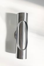 PRECIO UNIDAD. Aplique tubular con doble casquillo consiguiendo una iluminación muy agradable y especial. El interior es blanco y el exterior en color cromado cepillado.