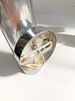 Instalación eléctrica original funcionando. Casquillos E27. Se ha puesto un soporte actual al tono para poder colocarlo a pared. Disponibles tres unidades. Medidas: 30 cm de alto x 8 cm de diámetro x 12 cm de fondo.