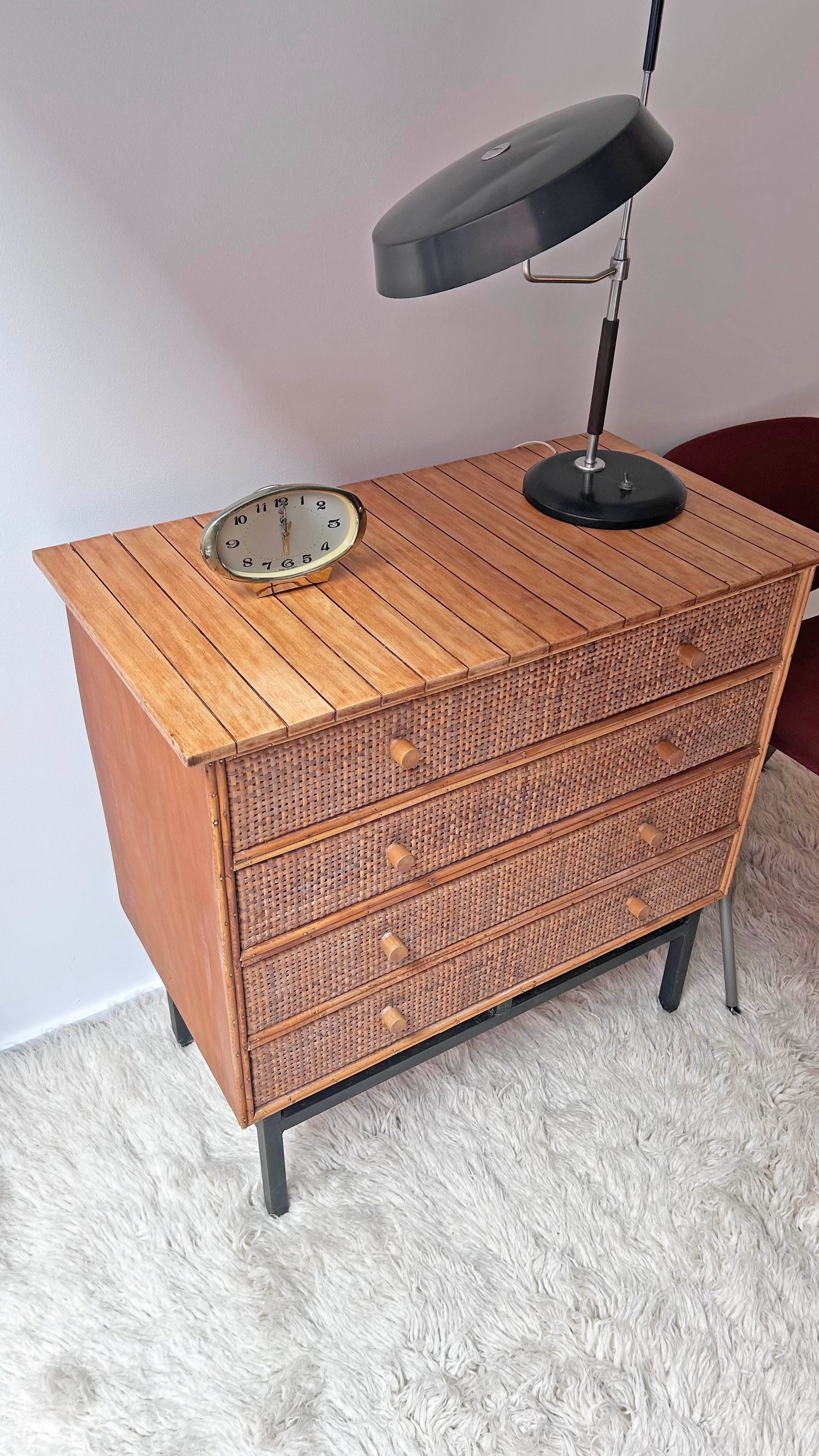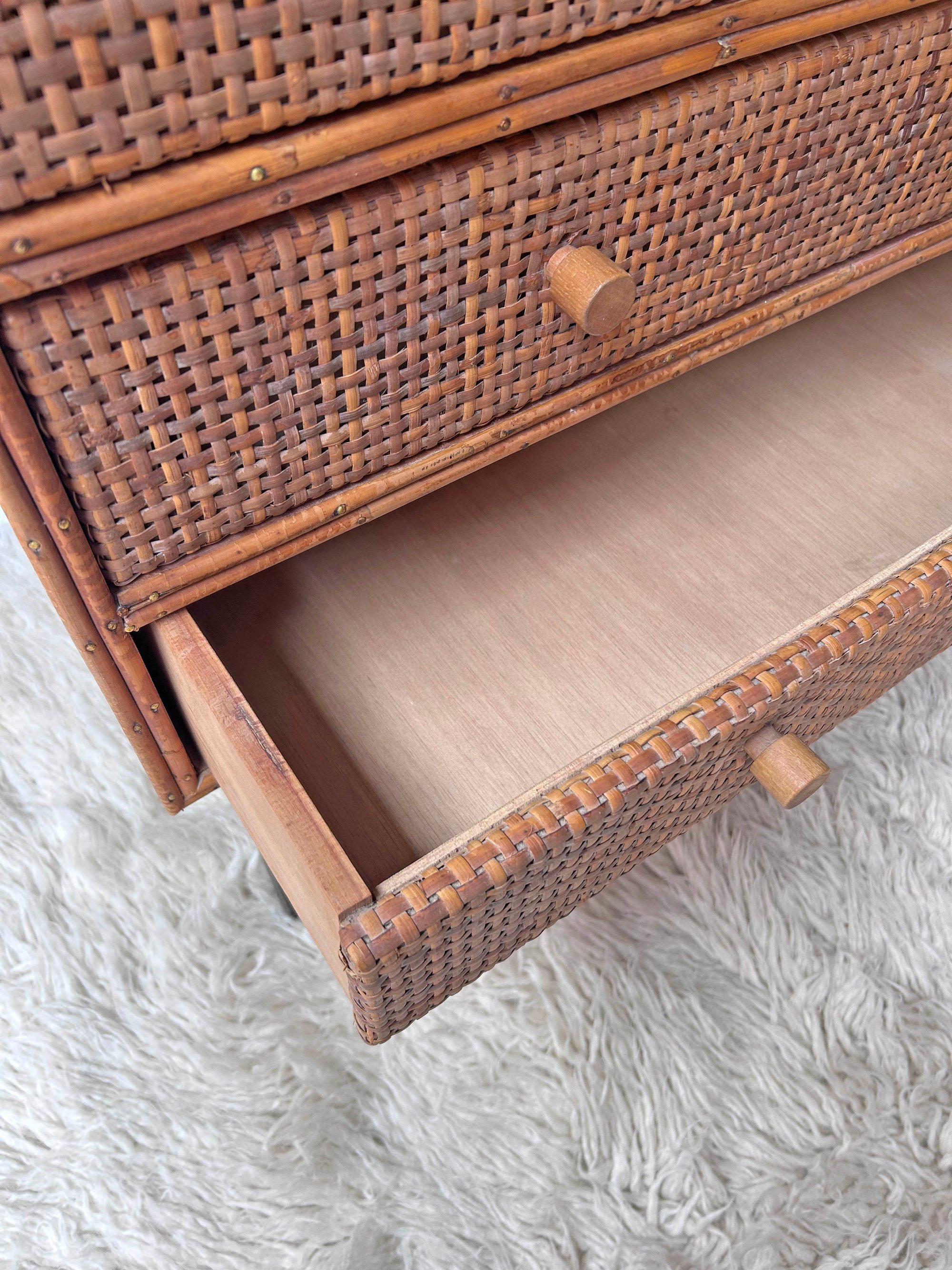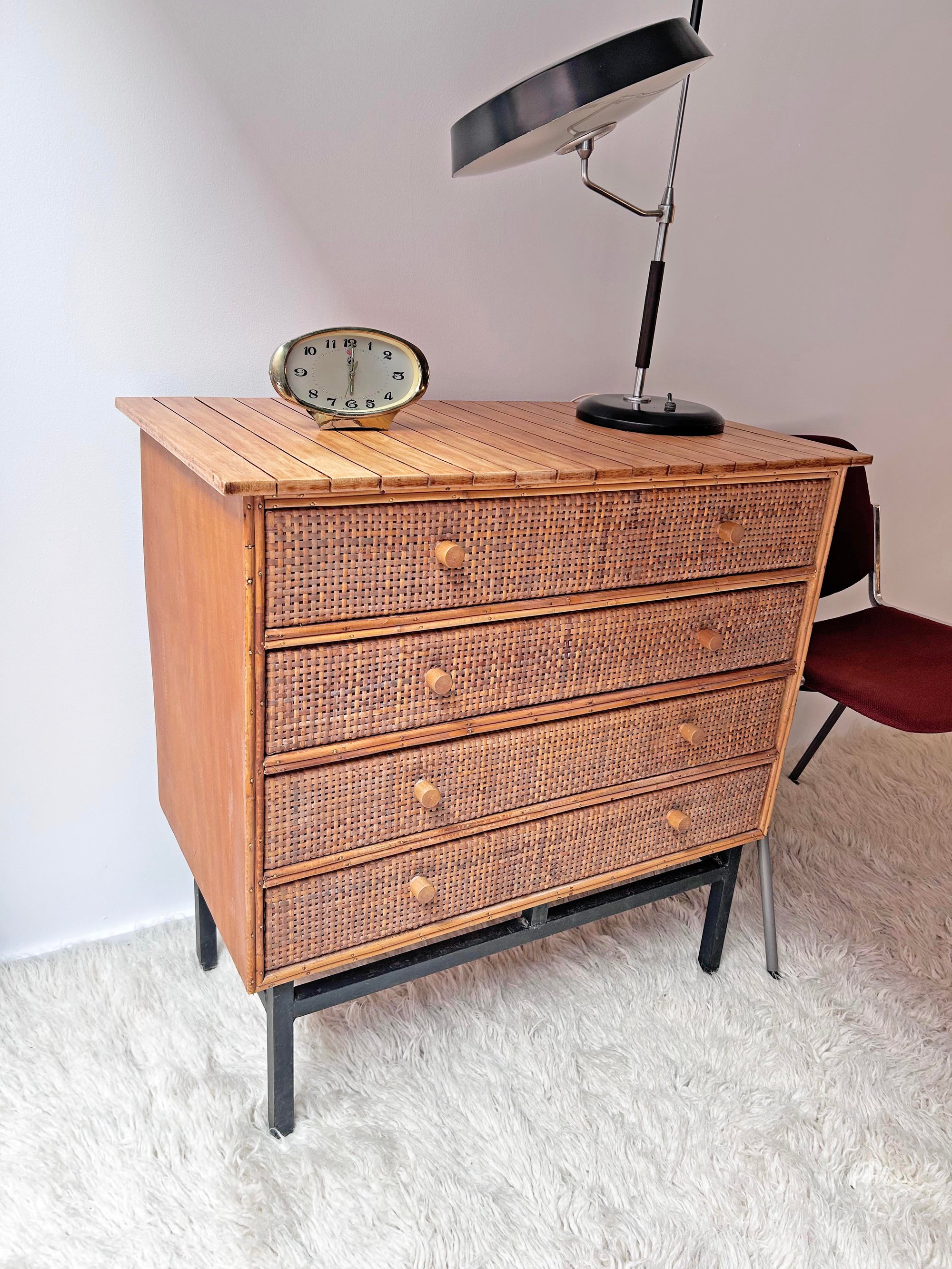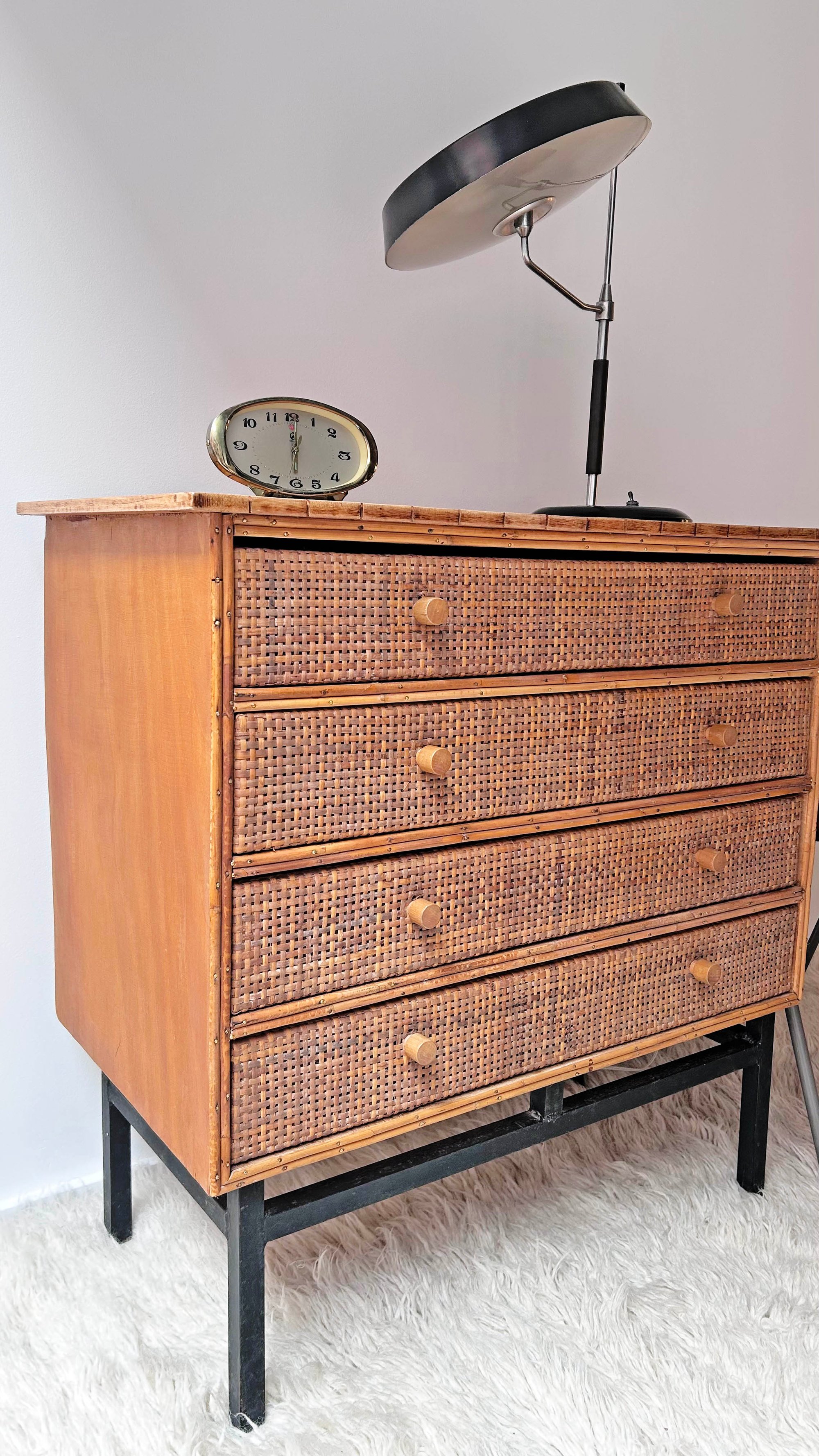 CÓMODA DE MIMBRE Y RATÁN, AÑOS 60