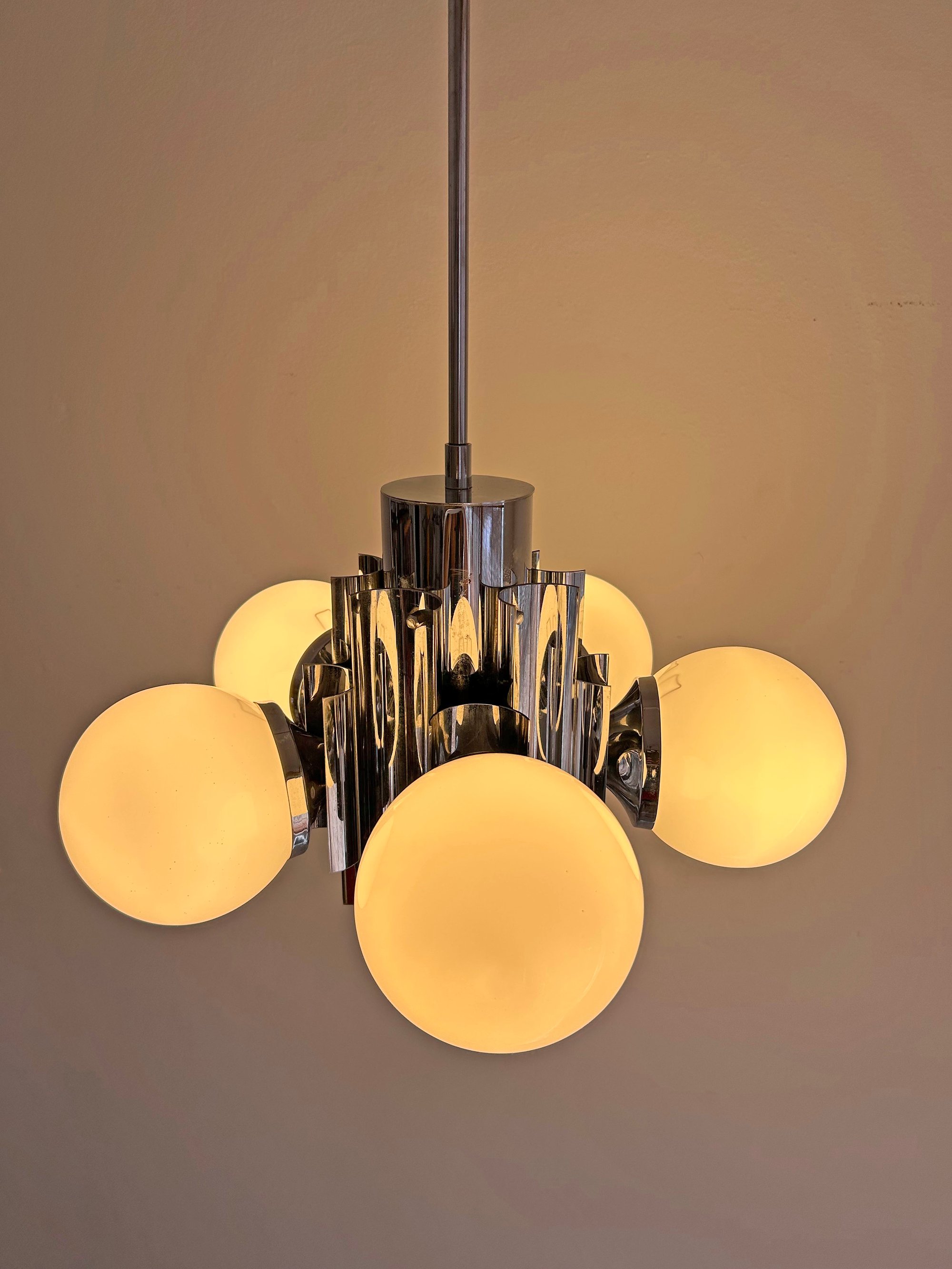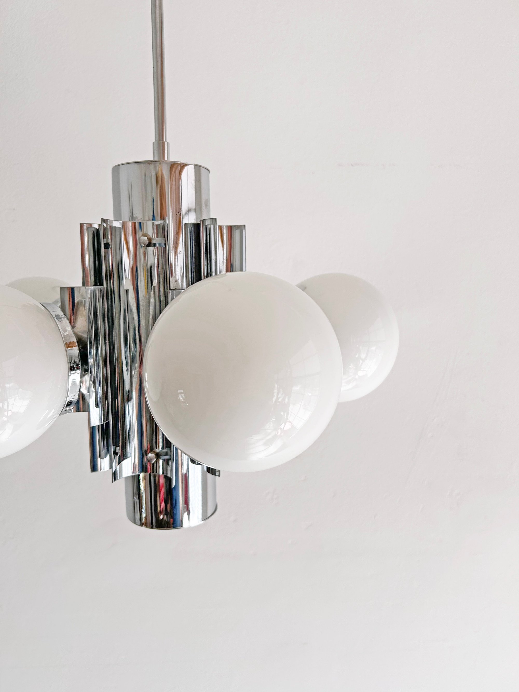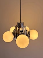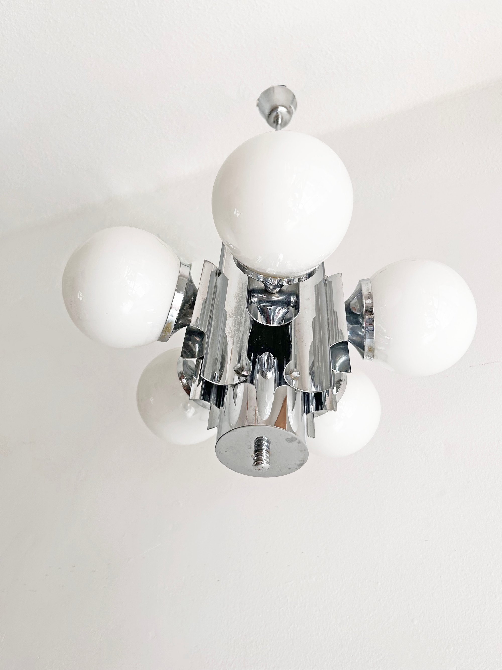 //VENDIDA// LÁMPARA VINTAGE CROMADA CON 5 GLOBOS, AÑOS 70