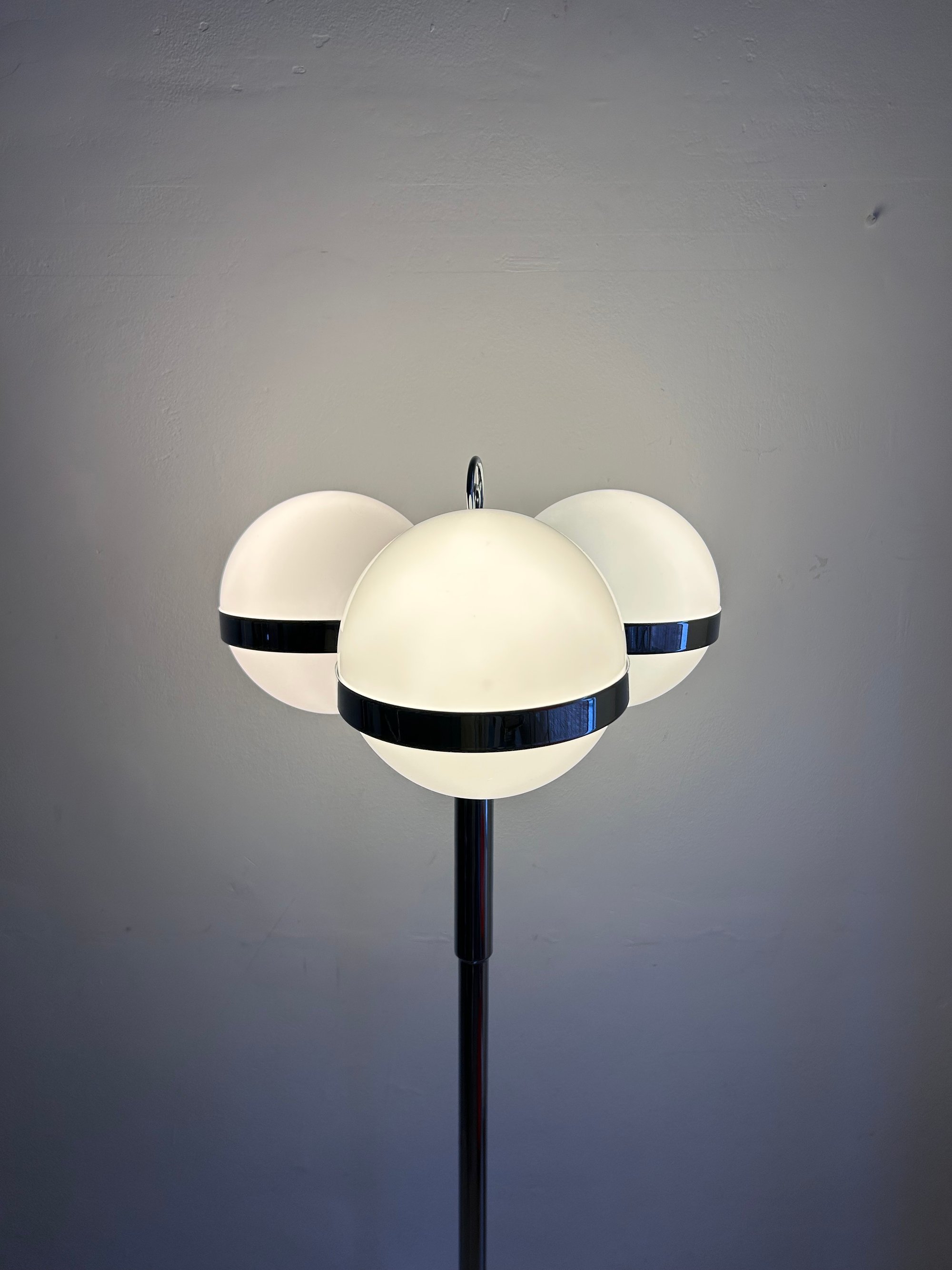 LÁMPARA VINTAGE DE SUELO CROMADA CON TRES GLOBOS, AÑOS 60