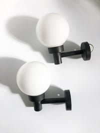 Rescatados de un edificio en Madrid, cuya junta de vecinos decidió cambiar esta monada. Se venden los 4 juntos. Hay otro lote de 3. Estructura metálica negra que sujeta globo blanco. Existe leve diferencia entre el tamaño o color de los globos, practicamente inapreciable. También tiene marcas del paso del tiempo en la estructura. Cableado nuevo. Medidas: 24 cm de alto x 15,5 cm de diámetro x 24 cm de fondo.