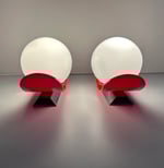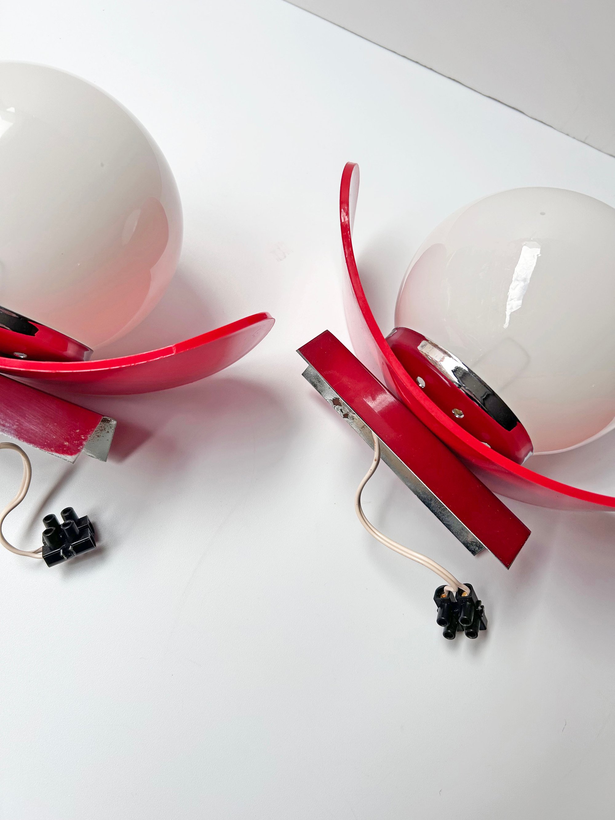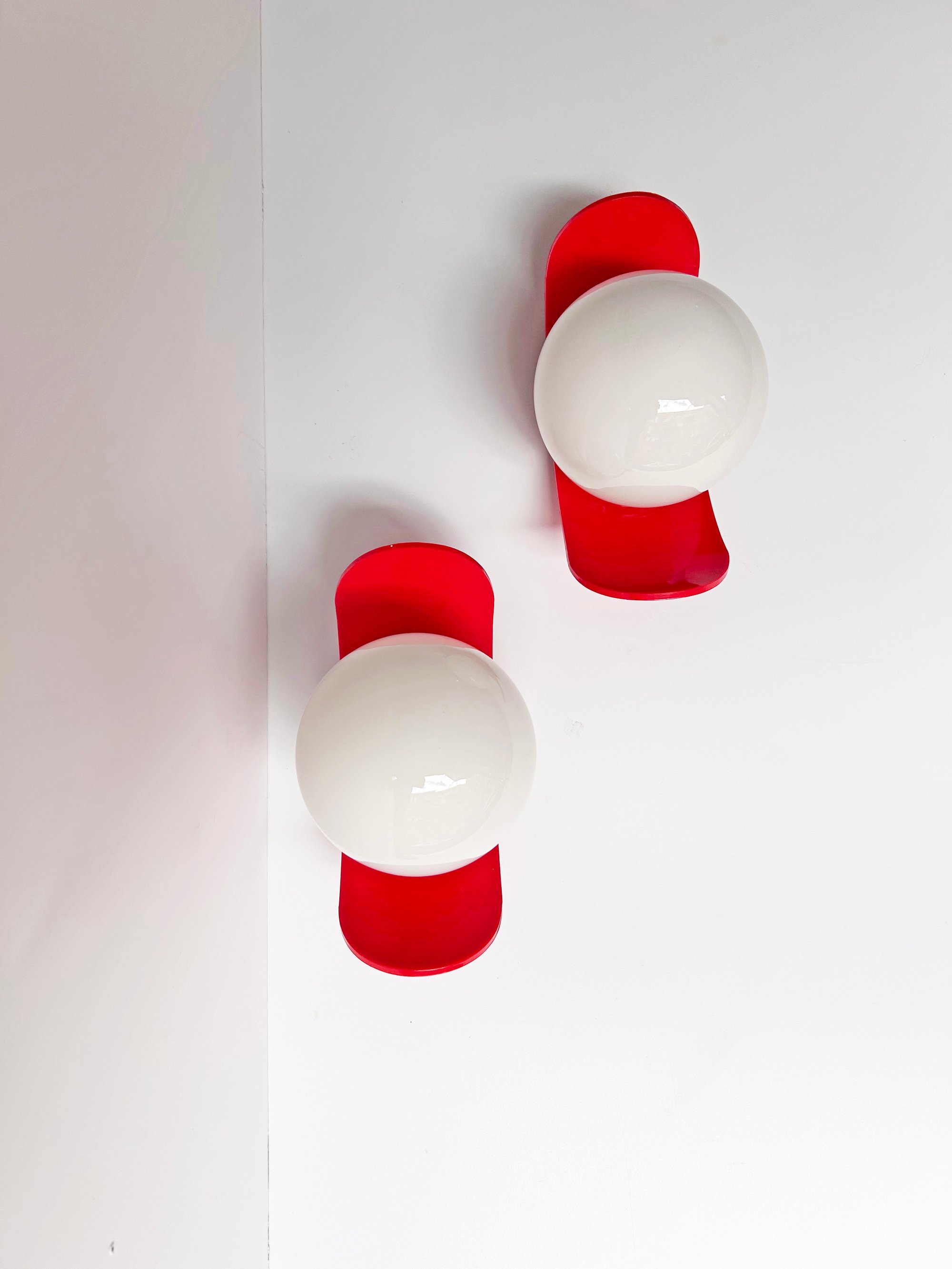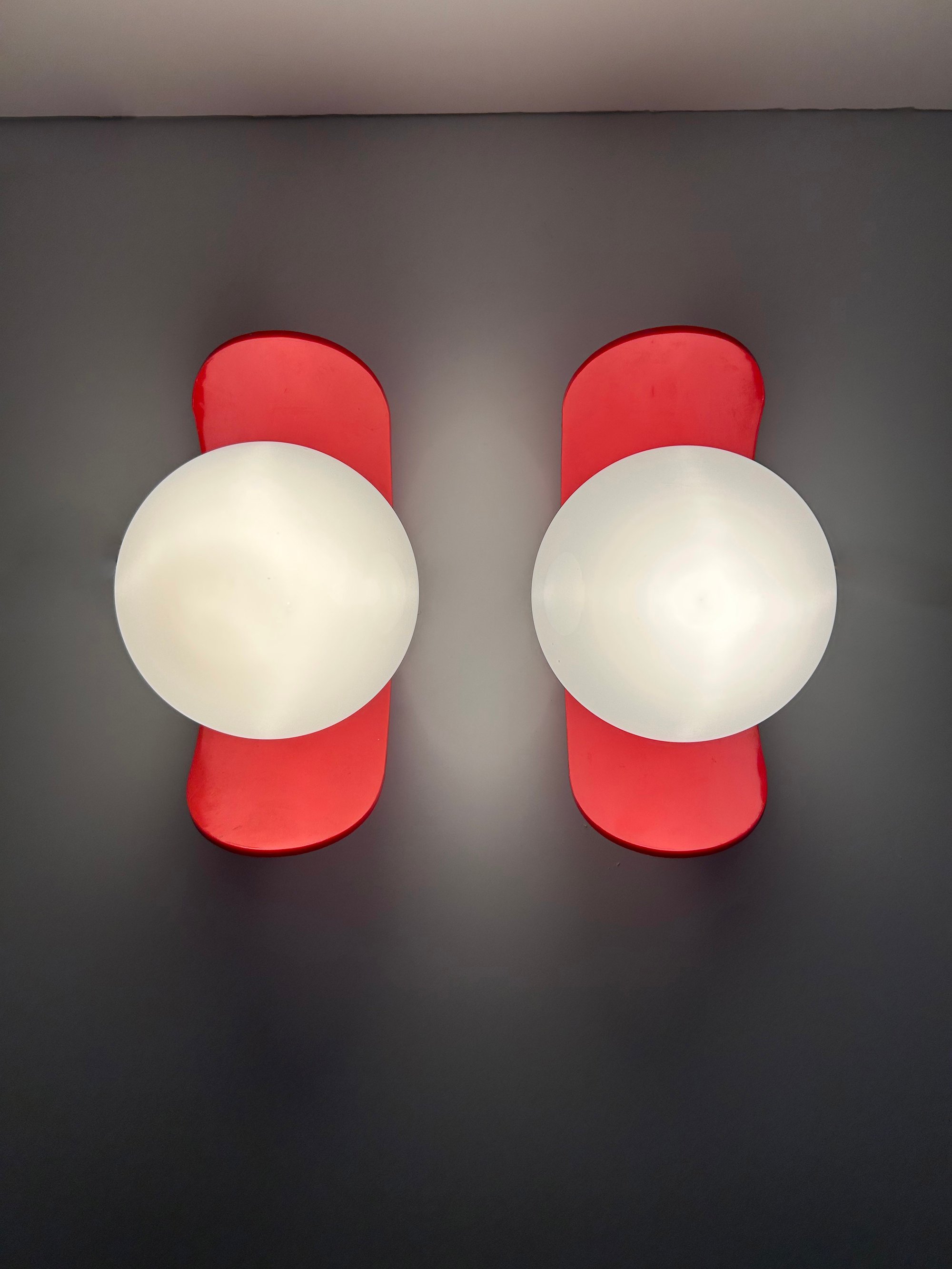 PAREJA DE APLIQUES EN ROJO Y BLANCO, AÑOS 60